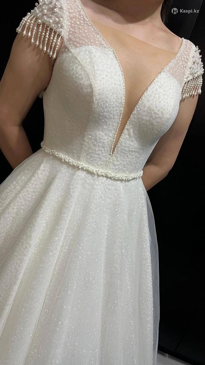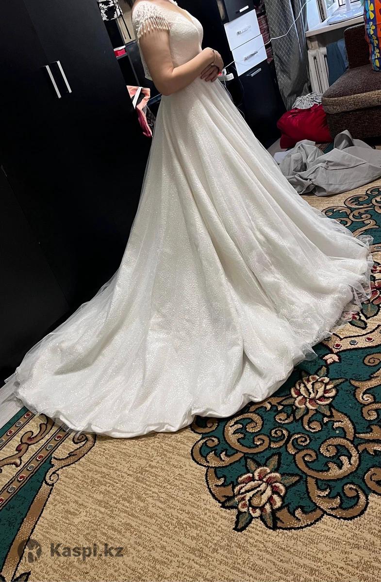 Продам свадебное платье итальянского бренда Lorena Bride модель Azucar. Lorena Bride Azucar часто позиционируется как современное, стильное и минималистичное платье, которое подойдет для девушек, предпочитающих лаконичный и элегантный образ. Платье одевалось 1 раз на свадьбе на пару часиков, в прокат не выдавалось, чистое после химчистки. Характеристики платья: - длинное платье до пола осыпана камнями, блестящая, с небольшим шлейфом, без разреза, сзади имеется скрытый корсет который можно регулировать по форме девушки. - без рукавов, имеются вставки из камней и жемчугов, можно чуть приоткрыть плечи и декольте подчеркивает красоту плеч и шеи невесты. - размер 44 (S) Оно выполнено в минималистичном и современном стиле, очень элегантный и благородный и эффектный Дополнение к свадебному платью имеется: - кольцо подъюбник - 2 вида фаты (1- однослойная 3 метровая белая фата, 2- двухслойная фата с камнями по краям. - гребень для волос - чехол для свадебного платья Покупали в за 280 000 тенге, отдам за 100 000 тенге. Торг имеется.