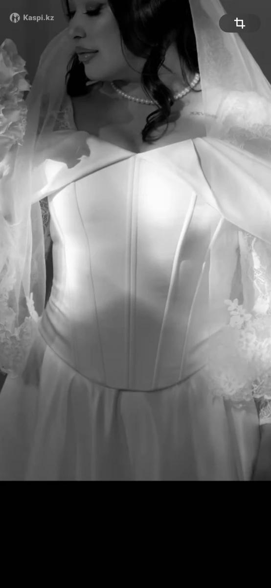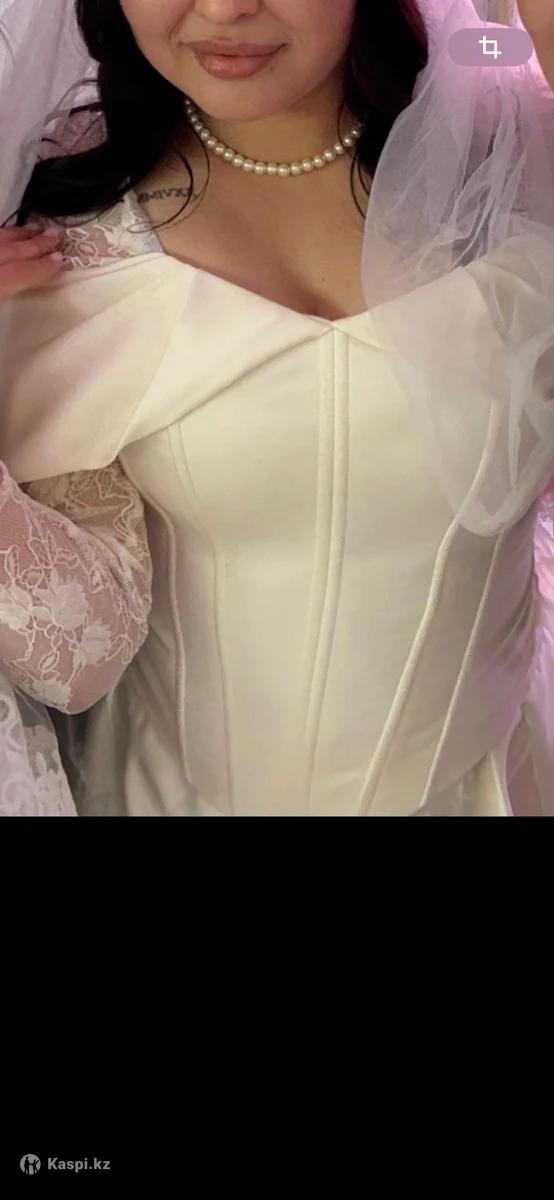 Продам свадебное платье на заказ, корсетное, Айвори, размеры 44–48 Продается свадебное платье с корсетным верхом, который подчеркивает талию. •Двойка (корсет + юбка) •Размер: подойдет на 44, 46, 48 •Цвет: Айвори •Пошито на заказ в салоне Sense KZ •Состояние: отличное, после химчистки •Особенности: корсет формирует красивую фигуру, юбка легкая и элегантная