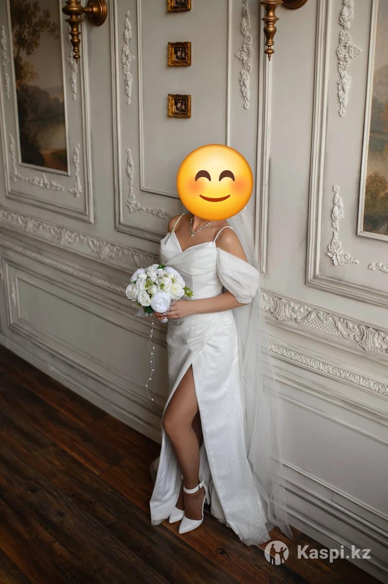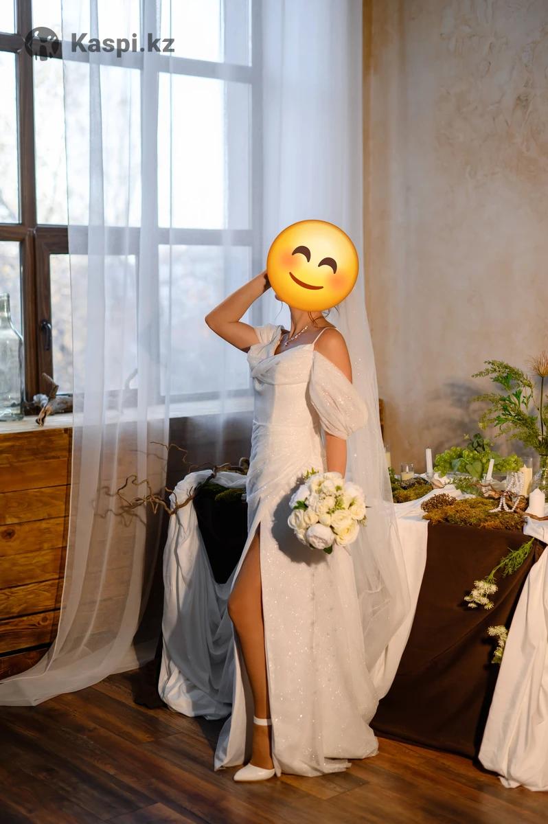 Продам свадебное платье размер 44, приталенное, в отличном состоянии, ткань красиво блестит, переливается, сзади бант, покупала в салоне Emilia Sposa, цена 80.000 тг