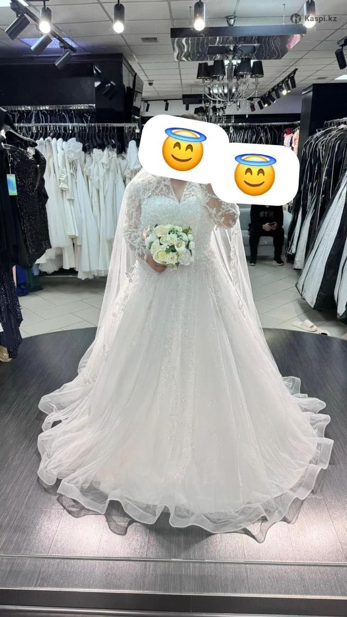Продам свадебное платье. Размер 50-54, возможно 56. Сзади шнуровка. Рост невесты 156 см. + каблук 8 см. Одевала только в день свадьбы, фотосессия была в день свадьбы. Прошла химчистку и отпаривание. Покупала в Emilia Sposa г. Караганда за 250 000. В комплекте чехол, тройка кольцо. Продаю за 150 000. Лучше купить, чем взять на прокат. Уйдут те же деньги. Примерка есть: будние дни после 19:00, выходные дни в любое время. Заранее позвонить. PLUS SIZE