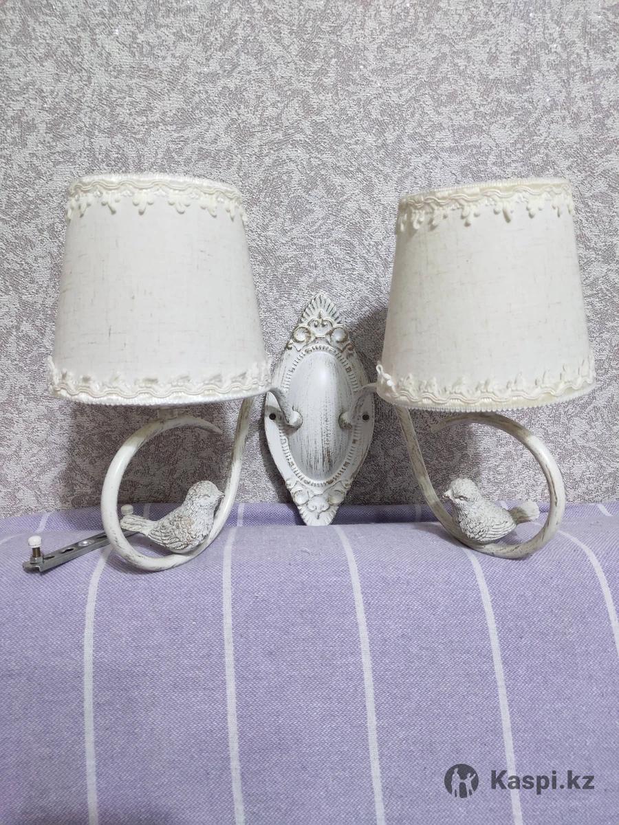 Светильник настенный двухрожковый, цоколь е27(под стандартные лампочки), стиль "Прованс", плафоны тканевые