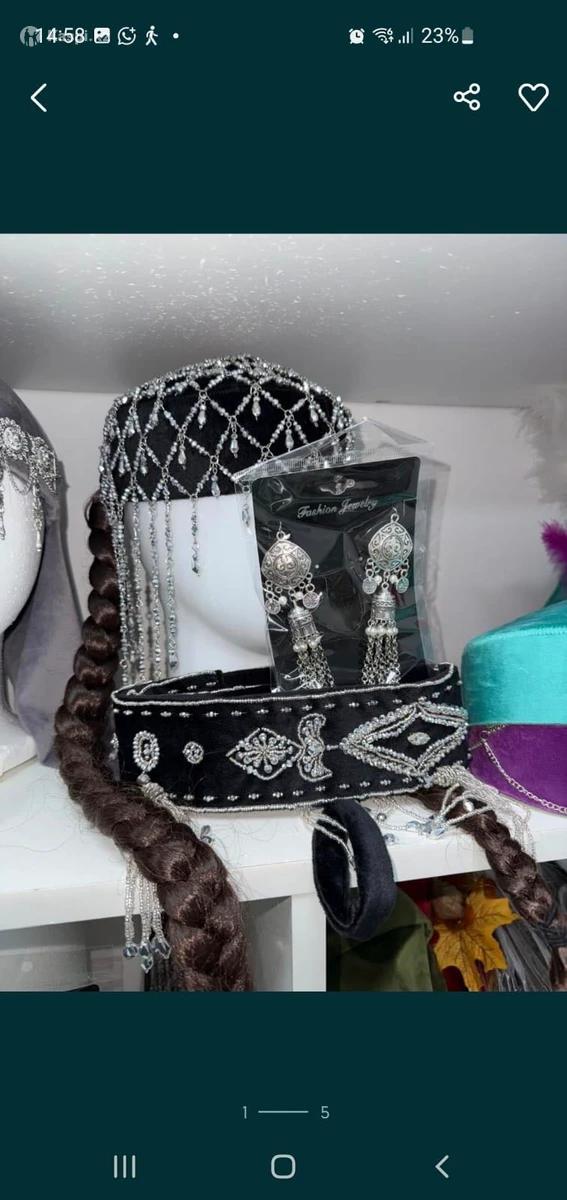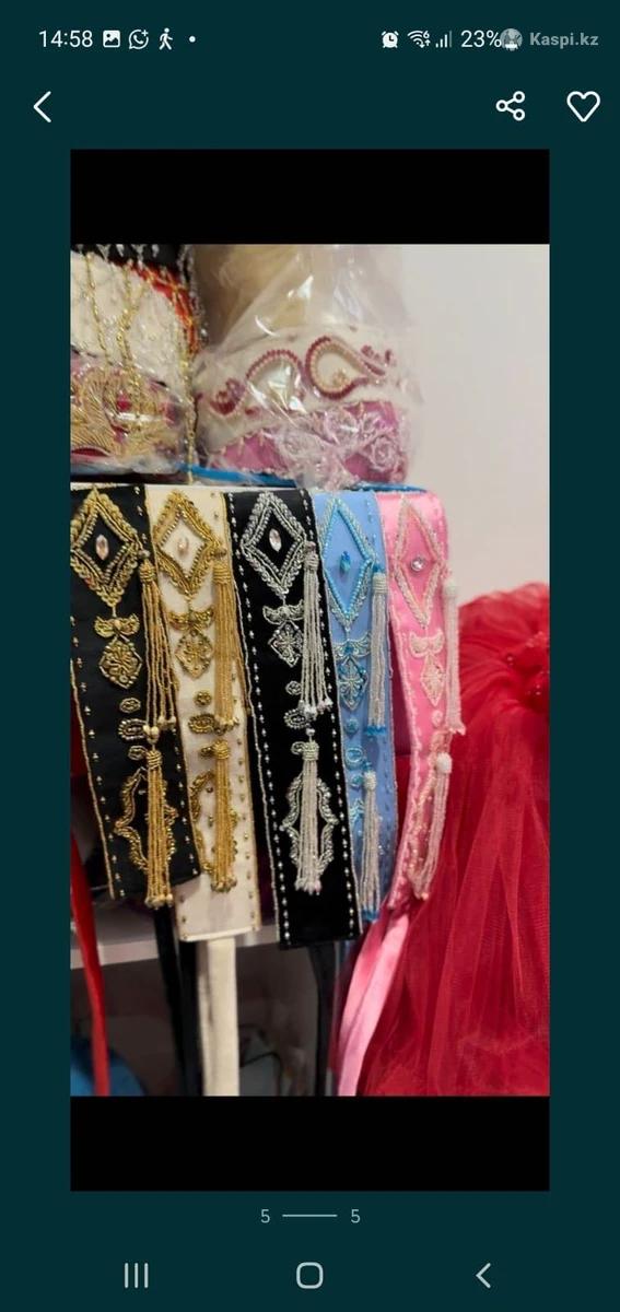 Такия белдIкпен,с поясом 20 тыс тенге Так же есть косы, шашбау.