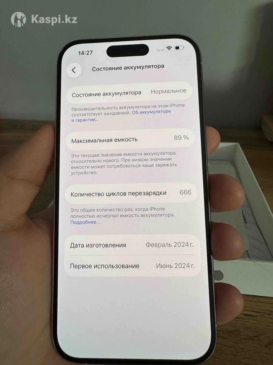 Продам : IPhone 15 PRO . Объем памяти :128 гб. Аккумулятор : 89%. С физической сим. Состояние идеальное, не вскрывался и не ремонтировался . Полный комплект: коробка + оригинальный шнур для зарядки . Брали летом 2024. 300.000 , реальному покупателю уступлю . Город Алматы .