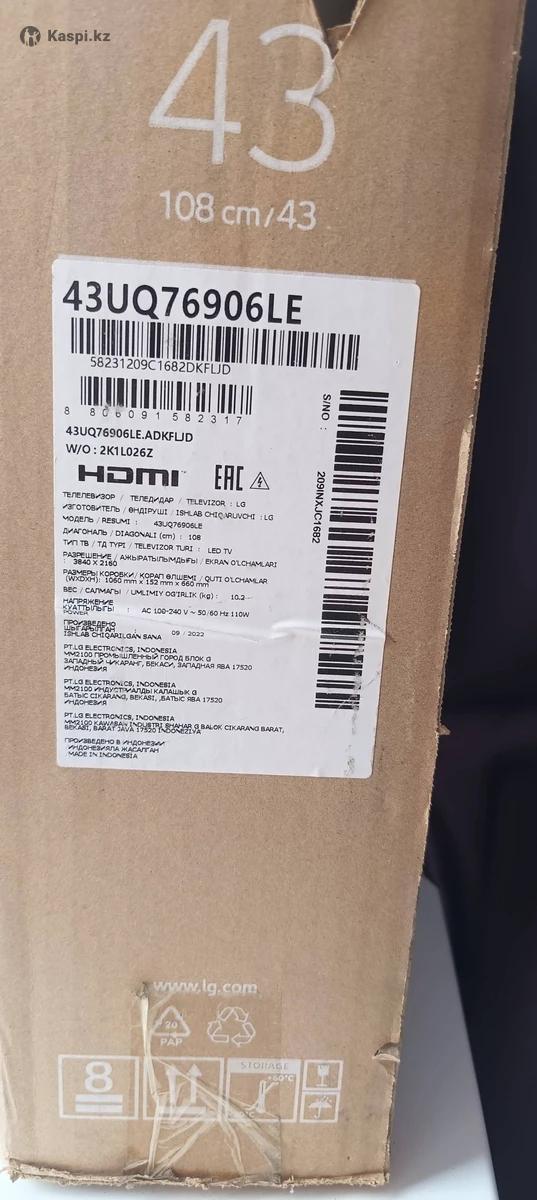 Телевизор LG 43UQ76906LE (43", 108 см) Модель с коробки: 43UQ76906LE Диагональ: 43" (108 см) Тип: LED, Smart TV Разрешение: 4K Ultra HD Полностью рабочий, без дефектов. Картинка яркая, звук чистый. Поддерживает Wi-Fi, YouTube, онлайн-кинотеатры. Состояние хорошее, аккуратно использовался. В комплекте: • телевизор • пульт • коробка