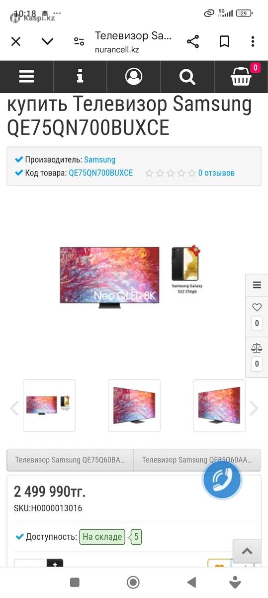 Продается Samsung 75 (190см). Разрешение 8К. Телевизор 2022года. Есть коробка, ножка, пульт. Экран в пленке, без царапин.