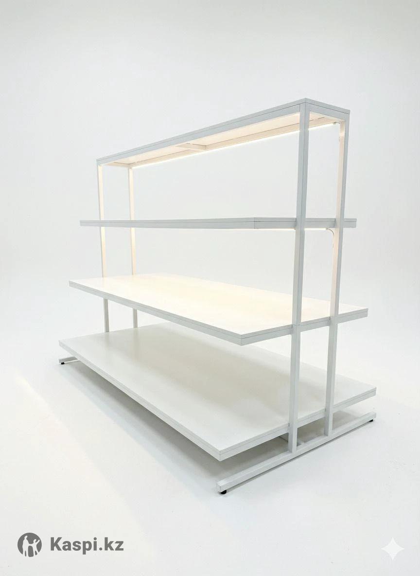 стеллаж центровой, очень прочная конструкция, белого цвета, металл и дерево