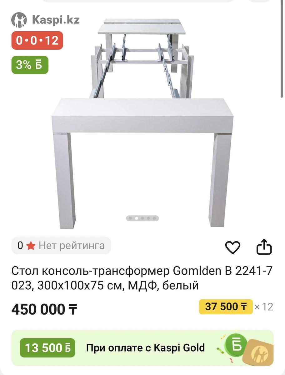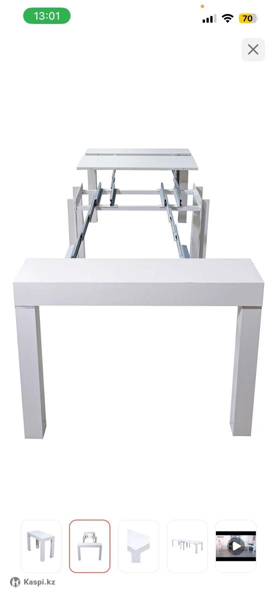 Трансформер стол Корейский, механизм отличный, высокого качества. Собирается до 50см, раскрывается до 300см. Ширина 100см. Устойчивый, крепкий, белый глянец