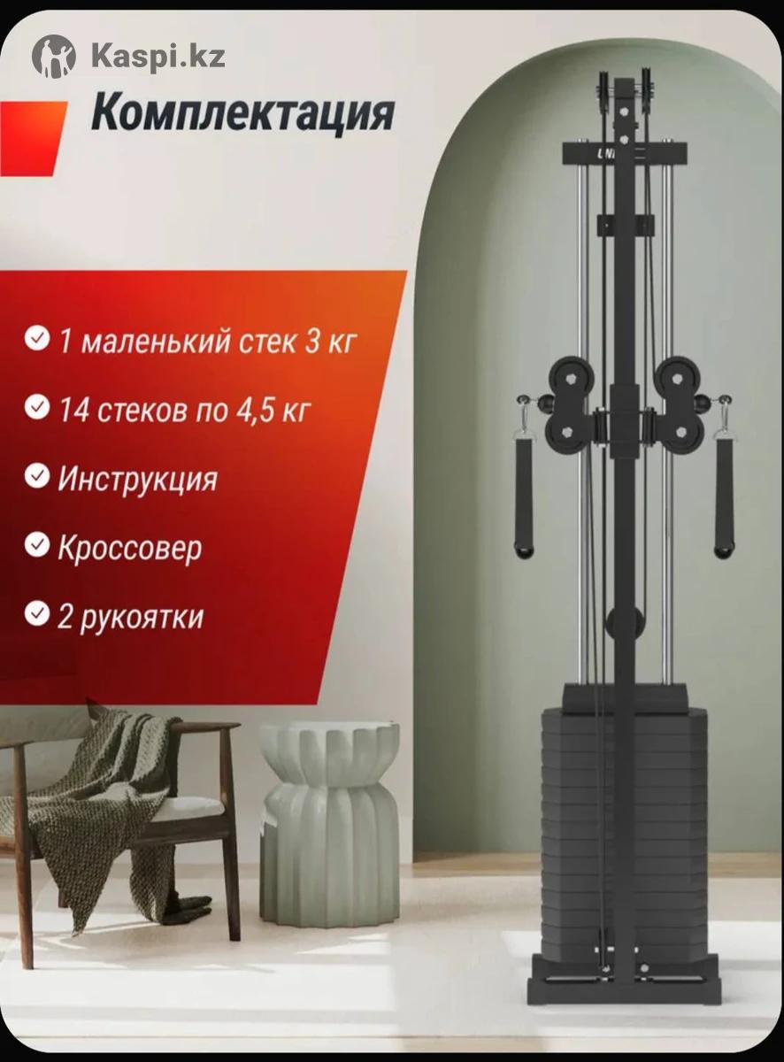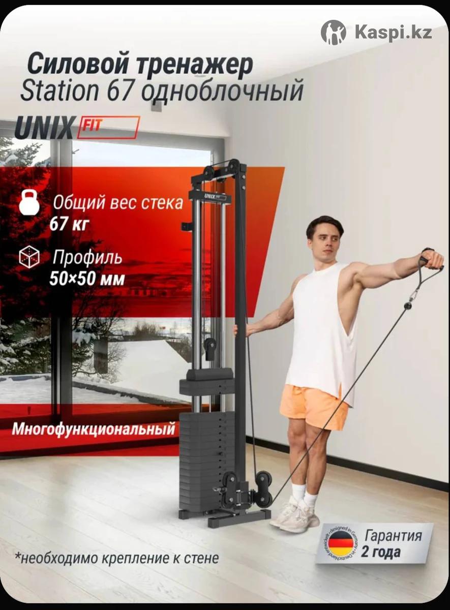 Кроссовер для дома UNIX Fit Силовая станция / Station 67 многофункциональный грузоблочный силовой тренажер, 1 блок, на все группы мышц Кроссовер со стеком 67 кг UNIX Fit — это многофункциональный силовой тренажер, предназначенный для тренировки различных групп мышц. Находясь дома вы сможете создать идеальное тело благодаря спортивной мультистанции. Большой выбор упражнений сделает каждое занятие разнообразным, а тренажер-кроссовер станет вашим личным тренером в достижении спортивных целей. Грузоблочный тренажер оснащен 14-ти стеками, каждый стек весит по 4,5 кг и 1 дополнительный небольшой стек весом 3 кг. Габариты тренажера 51 х 49 х 208 см. Рама изготовлена из высококачественного стального профиля и крепится к стене, надежно фиксируя тренажер, что гарантирует конструкции стабильность и безопасность даже во время самых интенсивных тренировок. Ножки мультистанции обрезиненные для защиты напольного покрытия, а 2 нескользящие рукоятки для верхней и нижней тяги сделают хват очень надежным, защищая от скольжения и предотвращая появление мозолей. Кроссоверы позволяют выполнять широкий спектр упражнений на все основные группы мышц, такие как: грудные, спинные, плечевые, ягодичные и мышцы ног. Это делает спортивный комплекс универсальным инструментом для тренировки всего тела. Вы сможете выполнять такие упражнения, как: - разведение рук в стороны (для грудных мышц); - тяга к груди (для спины); - тяга вниз (для спины и бицепсов); - сгибание рук на бицепс; - пресс на кроссовере; - французский жим (для трицепсов); - плие с отведением руки в сторону (для ног и плеч). - и многие другие. Предусмотрена возможность регулировки рукояток по вертикали (высоте) на 18 уровней. Регулярные ежедневные тренировки на силовом тренажере помогают развивать общую силу, выносливость, координацию, что так необходимо в условиях современной жизни. Тренируйтесь с удовольствием вместе с UNIX Fit! Комплектация 14 стеков по 4,5 кг, 1 маленький стек 3 кг, 2 ручки с нескользящими рукоятками, кроссовер