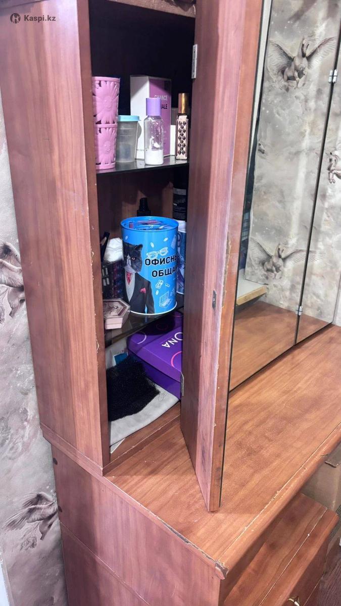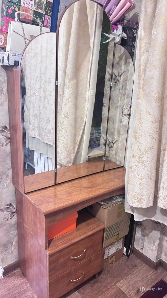 Трюмо в хорошем состоянии. Полки, задвижки и дверцы целые. Удобно использовать, как женский столик есть место под стул. Торг есть.