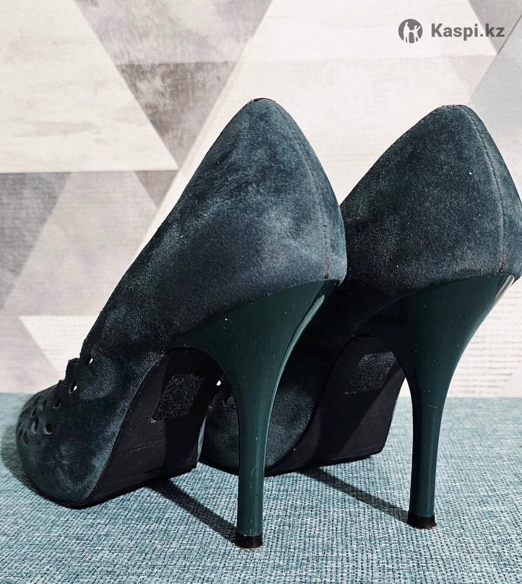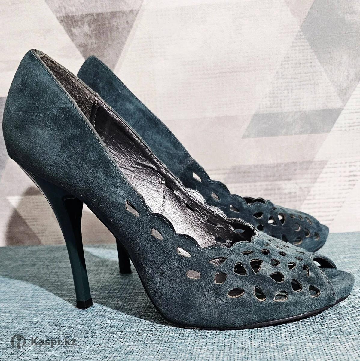 Продаю красивые туфли из замши глубокого изумрудного оттенка. Ажурный дизайн с вырезами и открытый носок придают легкость и женственность. Высокий каблук (10см) визуально удлиняет ноги и делает походку более грациозной. ● Размер 37 ● Состояние: отличное, обувались всего пару раз на торжества