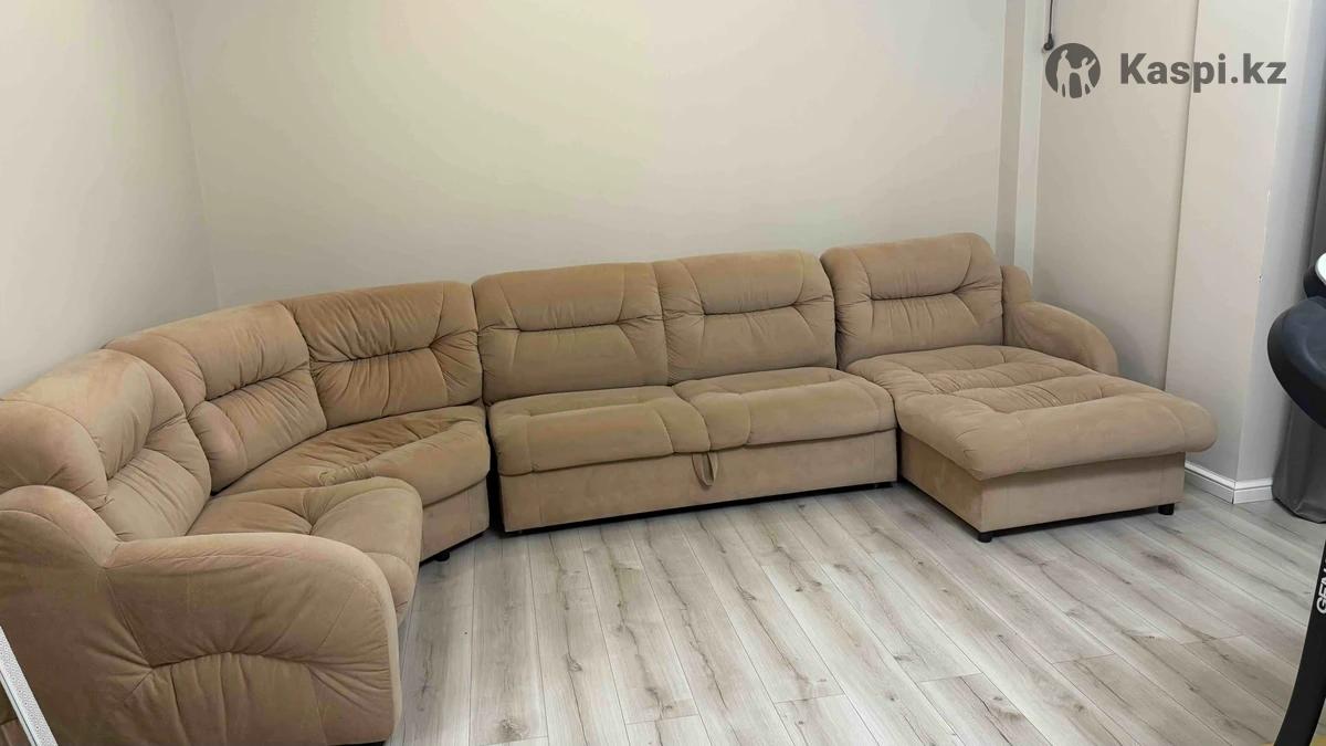 Угловой диван В хорошем состоянии. Раскладывается, есть отсек для хранения. Части можно разъединить. Мягкий и удобный, велюровая обивка, цвет теплый бежевый. НЕ ЗВОНИТЬ, пишите на . Размер дивана примерно 3,1 × 2,2 м. Точно уточняйте. Торг уместен.