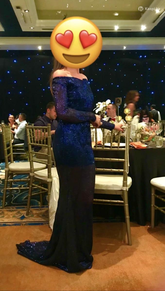 Вечернее платье богатого темно синего цвета с пайетками!Размер 40-42!надевали 1 раз!