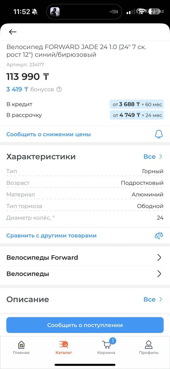 Продам Велосипед FORWARD JADE 24 1.0 (24" 7 ск. В идеальном состоянии Размер колес 24 Уральск Район остановки Жигули, Северо восток