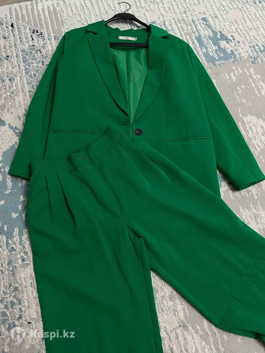 Продам вещи б/у брючный костюм зеленого цвета размер 46 ,вязаный костюм размер 48-50 надевали один раз цвет бежевый (цена за два костюма)