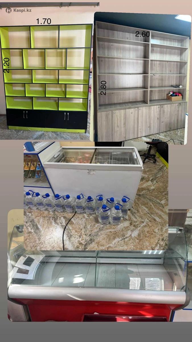 Продам витринный шкаф под вино водку 100000 тг . Под продукты зеленая 40000 тг. Кассовая зона 50000 тг. Морозильник -150000.Торг