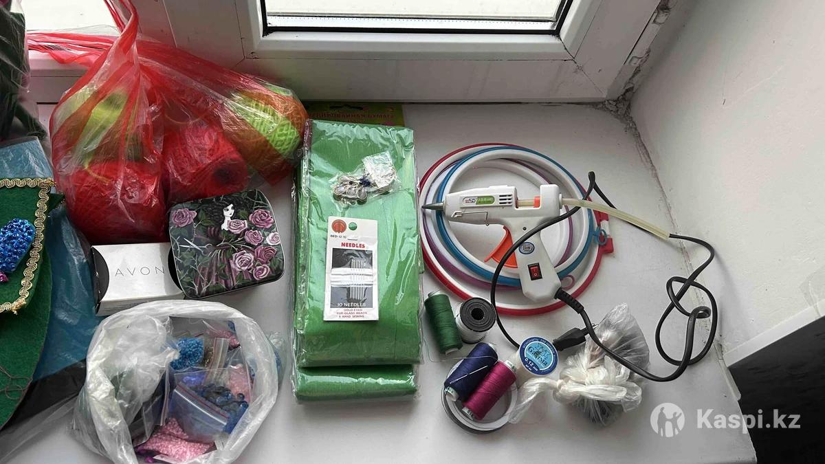 Продам для рукоделия,бисеры горячий клей,нитки иголки,пряжу,фетр