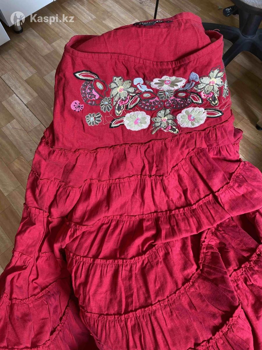 Продам льняную юбку в пол с вышивкой, состояние отличное .