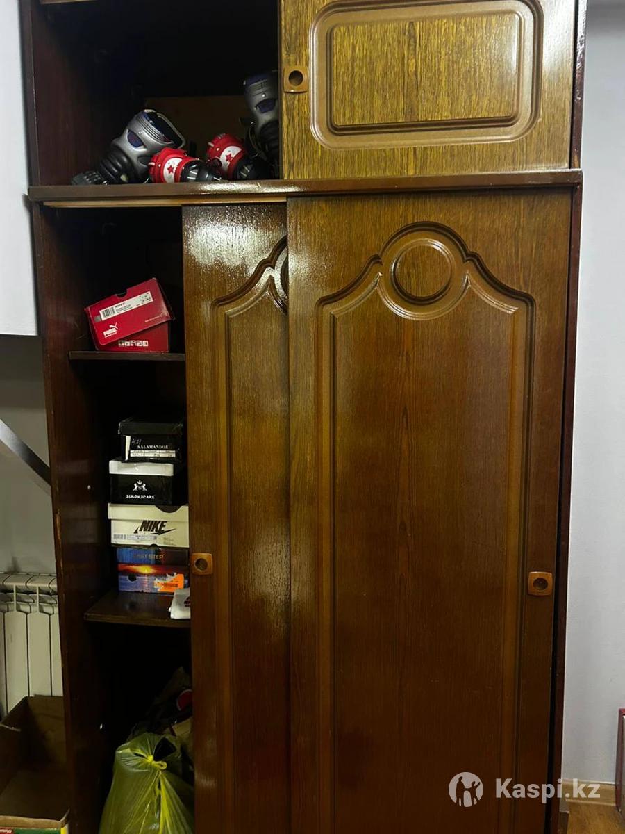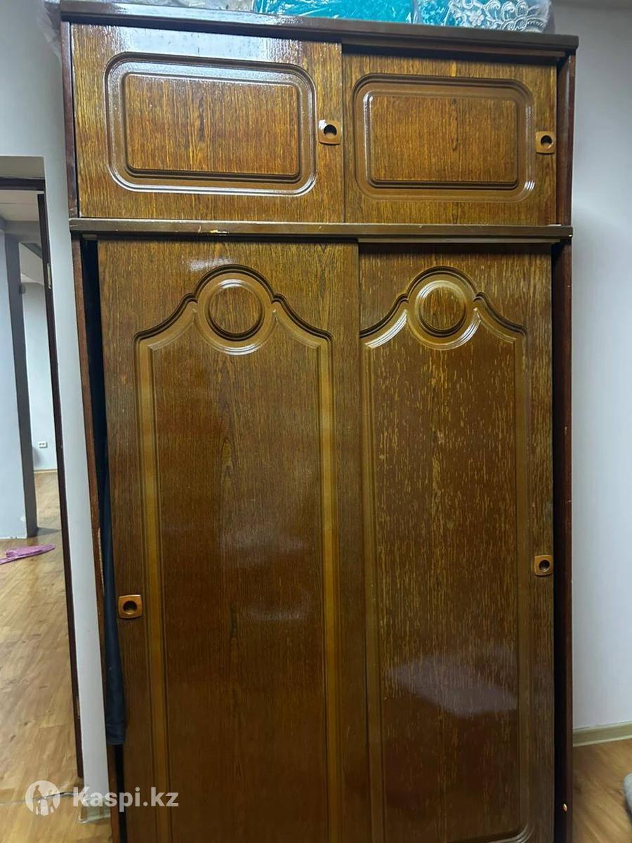 Шифоньер 2 шт из одной гарнитуры, каждая по 5000 тенге, реальному покупателю скидка. Один - плательный, другой с полками, двери купе. Еще с советских времен, можно покрасить. Материал крепкий.