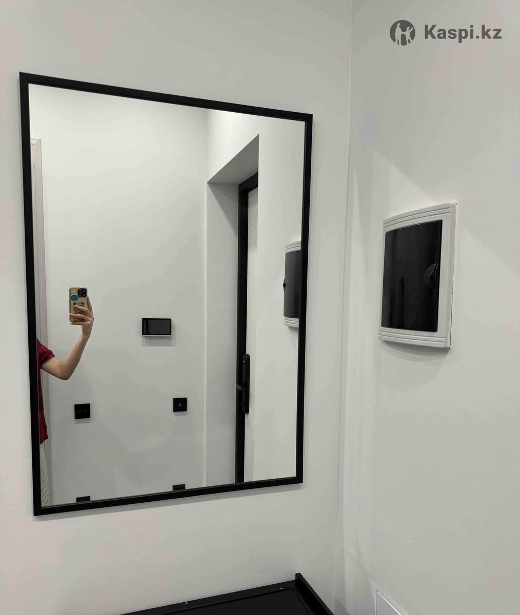 Стильное настенное зеркало в черной лаконичной раме. Подойдет для прихожей, спальни, гардеробной или салона. Дает четкое отражение, визуально увеличивает пространство. Состояние отличное.