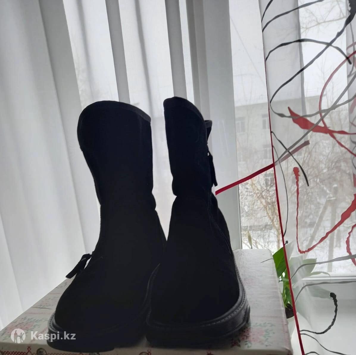 Черные, замшевые с мехом, на холодную зиму.