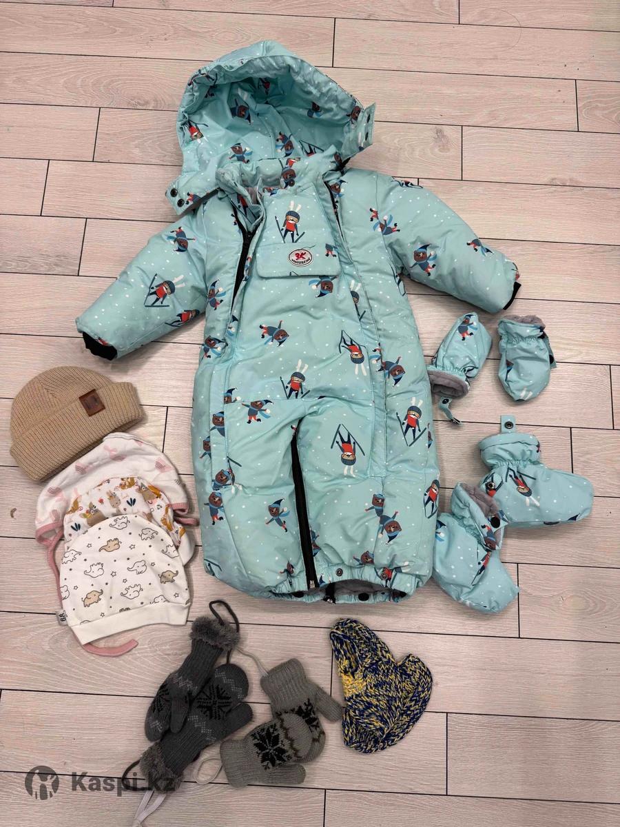 Продам детский комбинезон делается конвертом , и просто ножки. 4 шапочки (2 из них новые) вязаные пинетки новые. Две пары варежек За все прошу 5000
