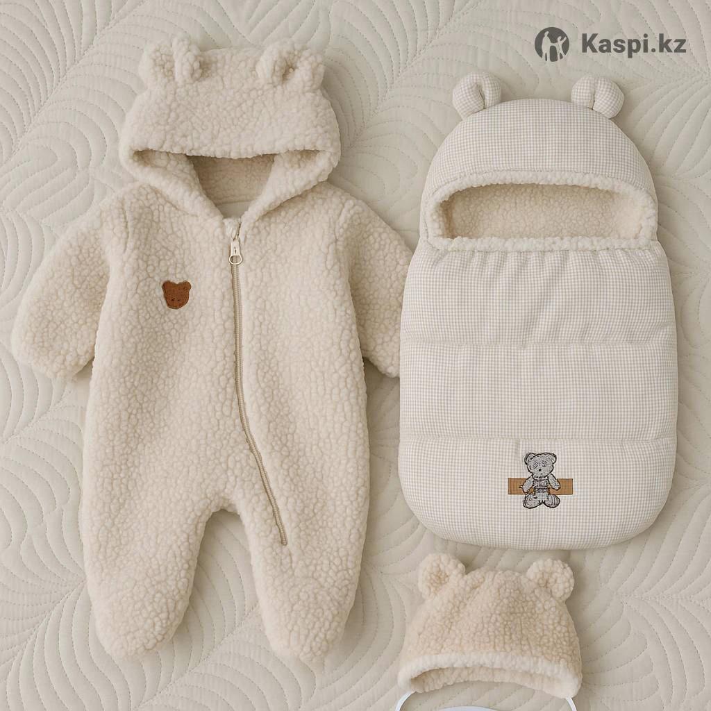 Продаю уютный и очень теплый комплект для прогулок и поездок. В отличном состоянии, использовался аккуратно. В комплект входит: • комбинезон с ушками • зимний конверт • теплая шапочка Материал мягкий, приятный, отлично держит тепло. Универсальный бежевый цвет. Идеально подходит для новорожденных и малышей до 6 месяцев. Получение: • самовывоз • возможна доставка (по договоренности)