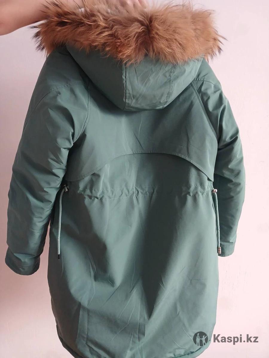 Зимняя куртка с капюшоном зеленого цвета подклад теплый снимается