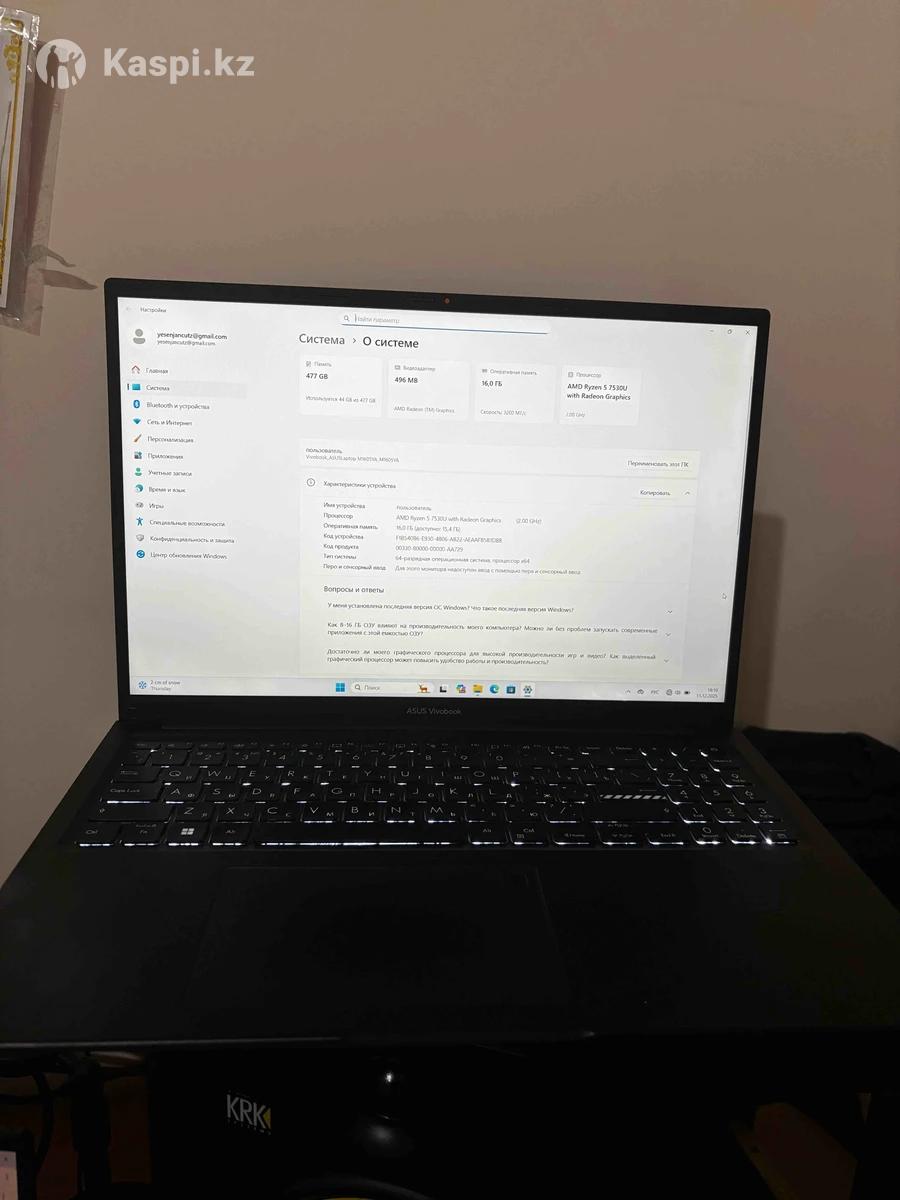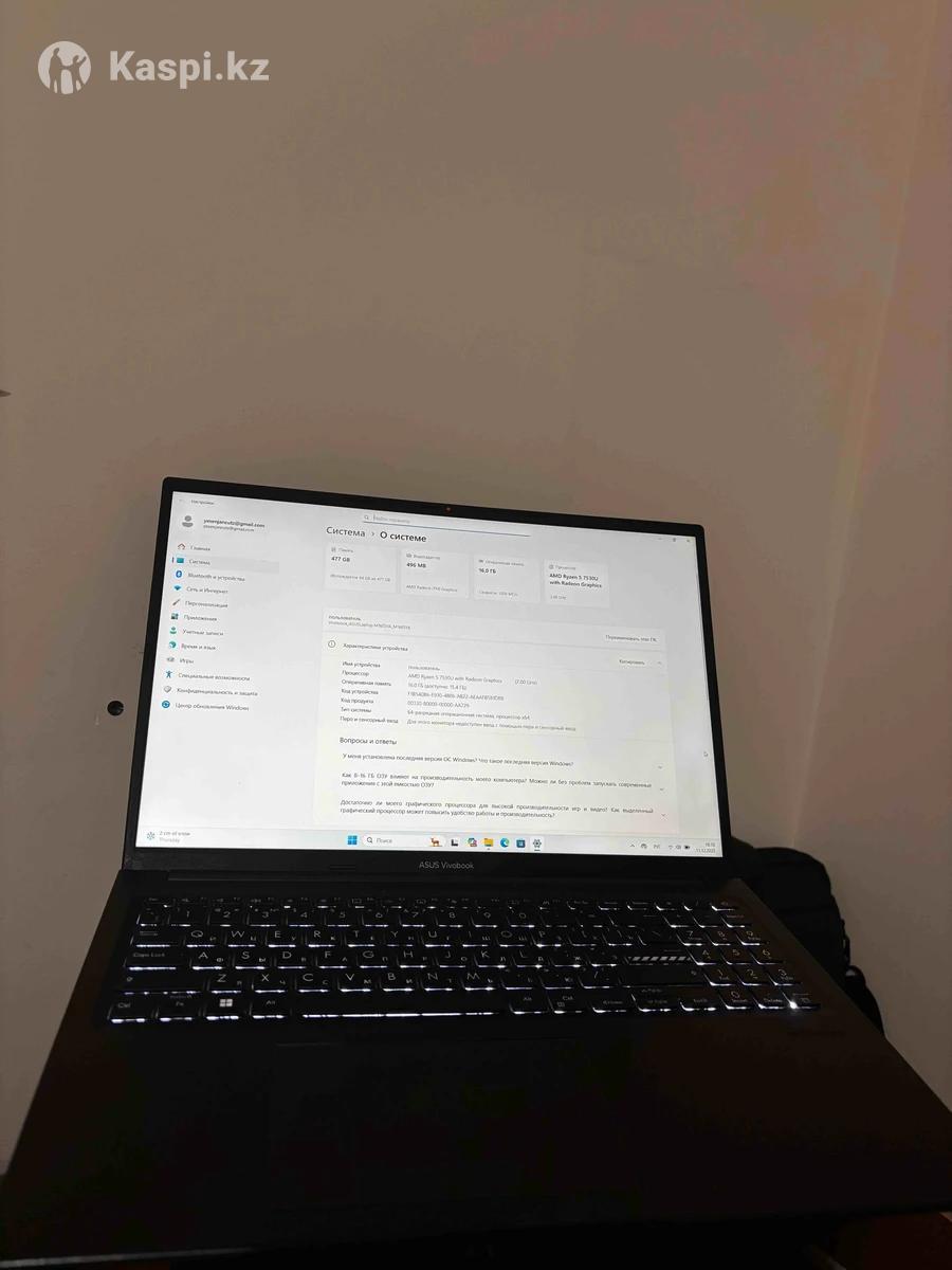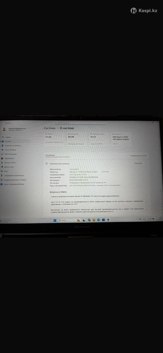 В отличном состоянии, работает быстро и стабильно. Подойдет для работы, учебы, монтажа, музыки и повседневных задач. Характеристики: •Процессор: AMD Ryzen 5 7530U (2.0 ГГц) •Оперативная память: 16 ГБ •Накопитель: SSD 512 ГБ •Видеокарта: AMD Radeon Graphics •Экран: большой, яркий •ОС: Windows 11 Плюсы: •Быстрый запуск и отклик •Тихая работа •Удобная клавиатура с подсветкой •Отлично тянет многозадачность Состояние — аккуратное, без серьезных дефектов. Продаю в связи с ненадобностью.