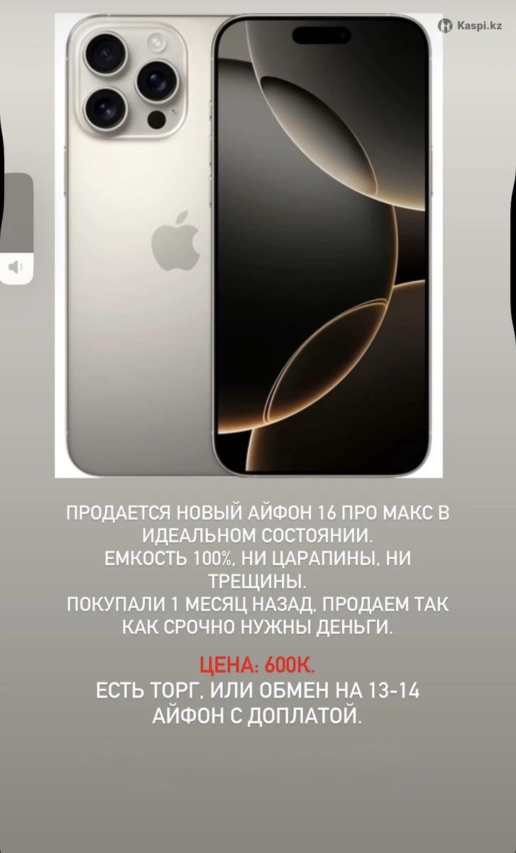 ЧИТАЙТЕ ФОТО ОБЪЯВЛЕНИЕ Продаю Айфон 16про max 256 гб пользуюсь примерно 2 месяца. Емкость 100% Продаю из за того что нужны деньги. Реальному покупателю не большой торг