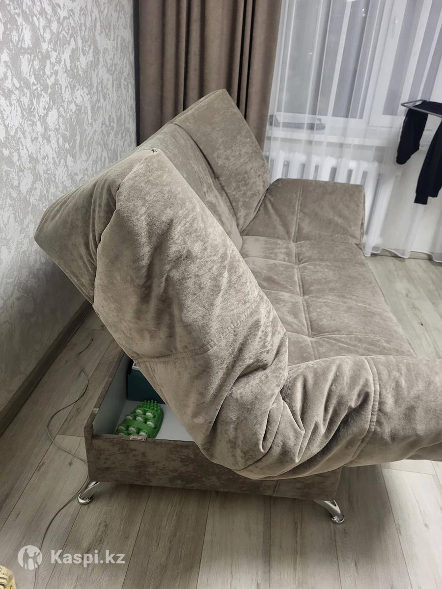 Продаю диван-кровать в отличном состоянии. Отлично подходит для сна, очень мягкий и удобный. Можно использовать как полноценную кровать, либо как диван. Снизу имеется место для хранения вещей. При желании чехол можно снимать и стирать. Ширина в разложенном виде 120 см, длина 200 см. В сложенном виде длина 165-170 см. Подлокотники так же регулируются посвободнее. К сожалению когда брали диван не подрасчитали габариты. В другом случае оставили бы себе, так как спать на нем комфортно, и удобно, что превращается в диван. Брала на 190 тысяч.