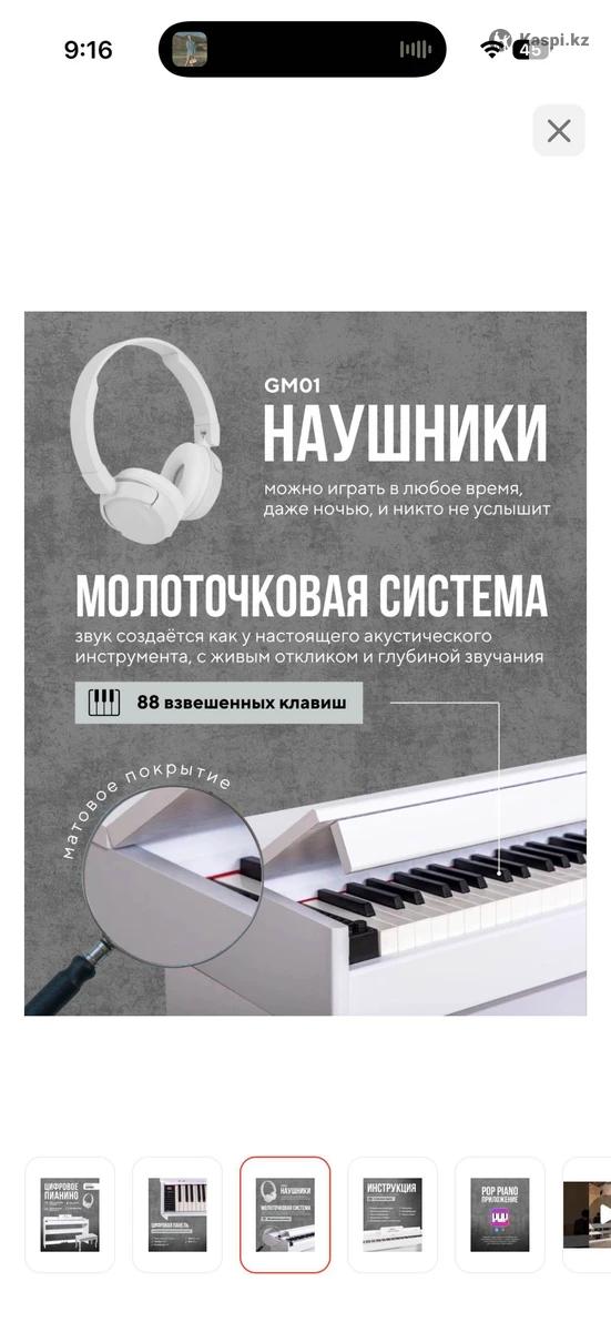 Продам почти новое пианино с банкеткой в отличном состоянии. Почти не использовалась. Молоточковая система, есть Bluetooth, в комплекте идут наушники. Пианино белого цвета