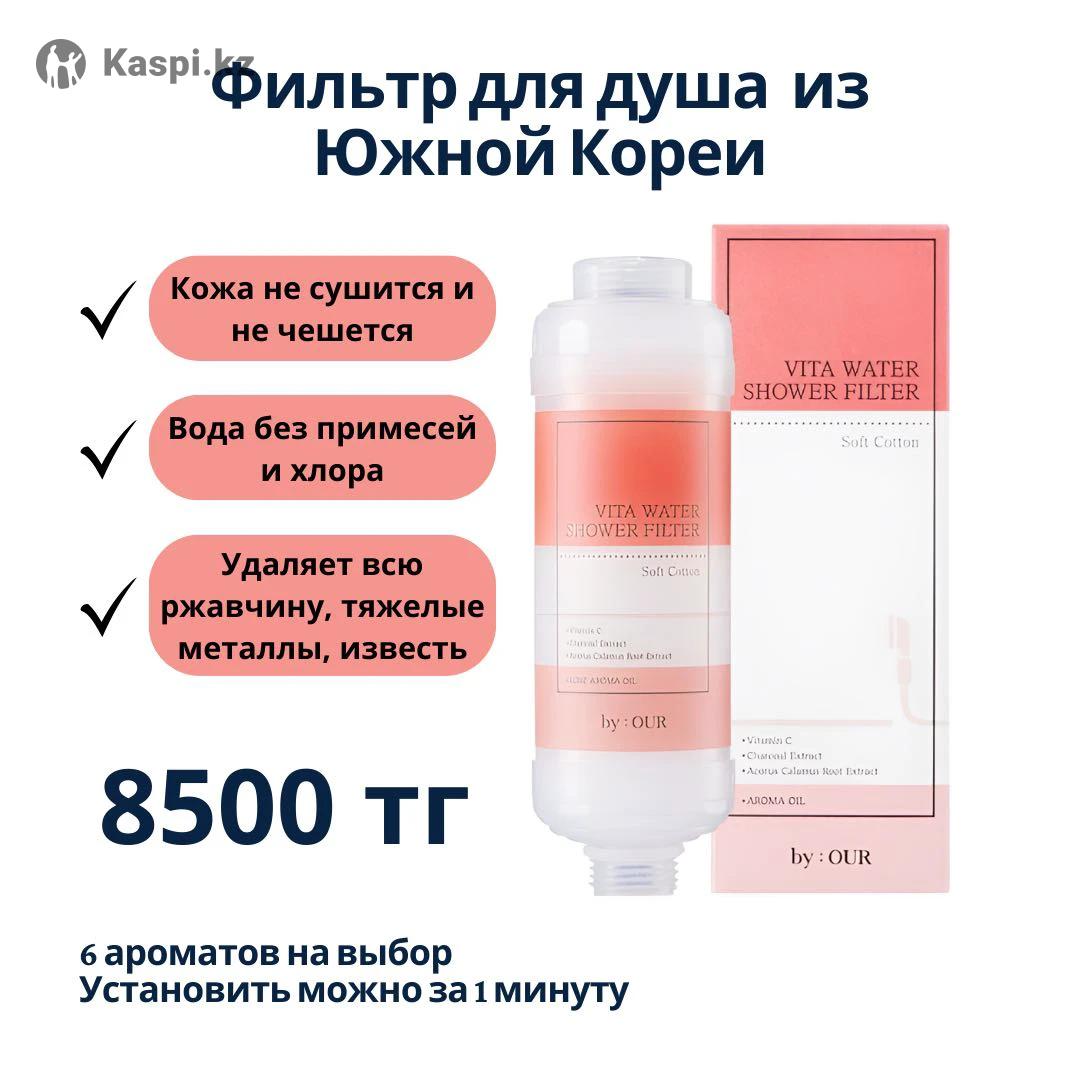 Очищает воду от хлора, ржавчины и извести - бережная забота о коже и волосах всей семьи! Идеален для чувствительной кожи, детей и аллергиков. ✅ Фильтрация: хлор, тяжелые металлы, осадок ✅ Срок службы: до 3 месяцев (в зависимости от качества воды) ✅ Установка: 1 минута, подходит к любому душу ✅ Ароматы на выбор: детская присыпка, мягкий хлопок, лаванда, лимон-имбирь, роза, фитонцид. ✅ Сертификация: FDA
