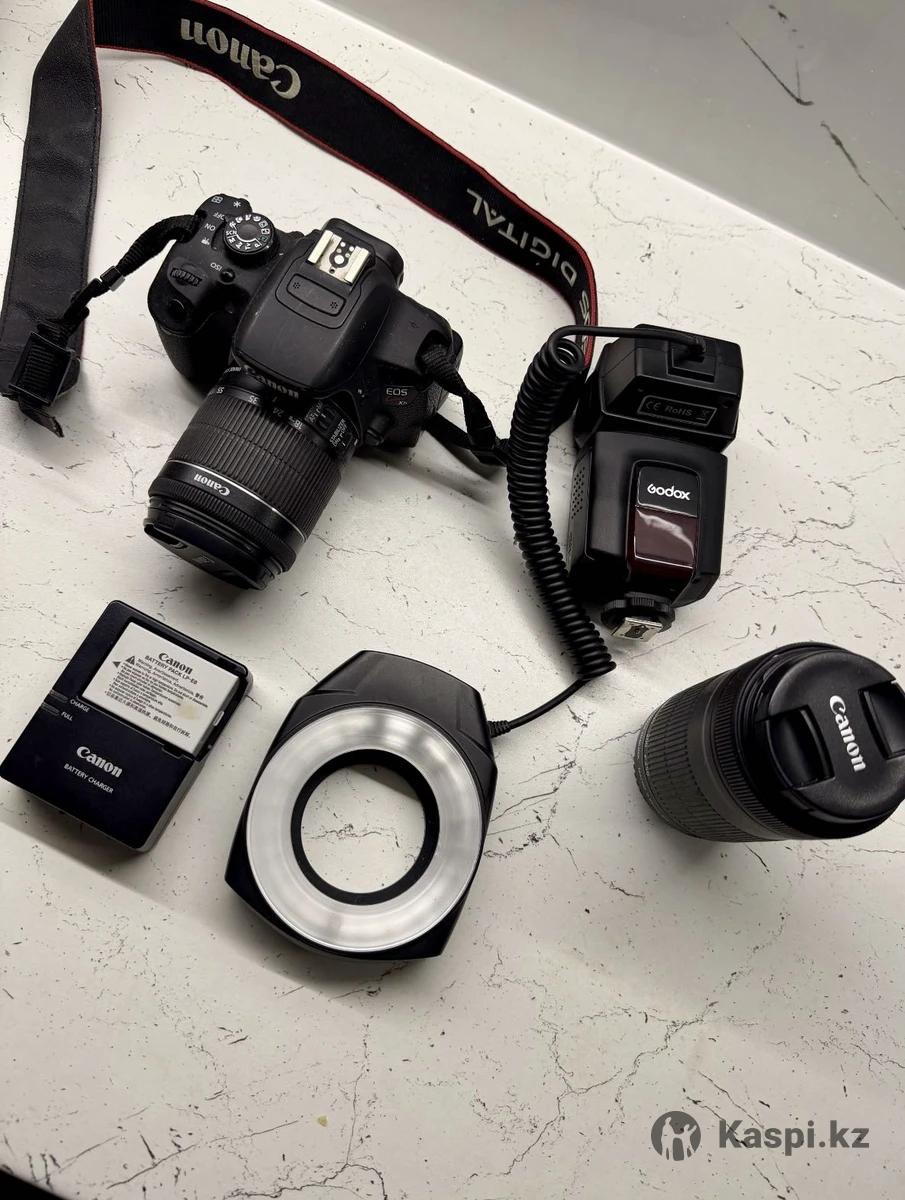 Фотоаппарат Canon EOS Kiss X7i (в отличном состоянии) Профессиональная зеркальная камера — идеальный вариант для фото и видео! Снимает четко, цветопередача отличная, автофокус работает быстро. В комплект входит: Макро Объектив 55-250 мм • Объектив Canon 18-55 мм • 2 оригинальные батареи • Зарядное устройство • Карта памяти • Вспышка Godox - в подарок! Камера бережно использовалась, без царапин и дефектов, все работает идеально. Подойдет для контент-съемки, съемок в Студии, путешествий и блогов. г. Актобе Писать или звонить только На звонки на номер не отвечаю только