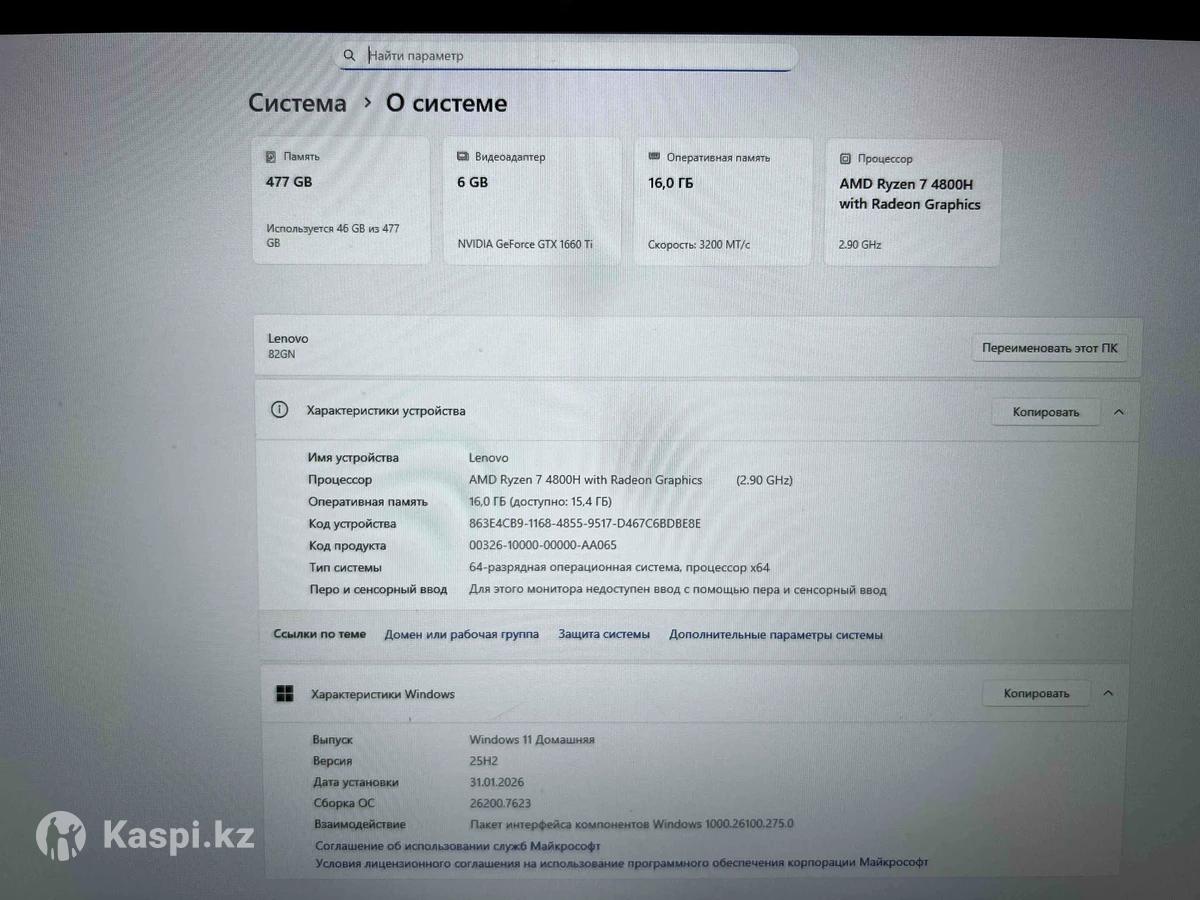 Lenovo Legion 5 — мощный игровой ноутбук Продаю производительный ноутбук в отличном состоянии. Подойдет для игр, работы с графикой, монтажа и любых тяжелых задач. ⚙️ Характеристики: •Процессор: AMD Ryzen 7 4800H (8 ядер / 16 потоков, до 4.2 ГГц) •Видеокарта: NVIDIA GeForce GTX 1660 Ti 6GB •Оперативная память: 16 ГБ DDR4 •Накопитель: SSD 512 ГБ (быстрая загрузка системы и игр) •Экран: 15.6” Full HD (1920×1080), IPS •Система: Windows 11 (чистая установка) •Охлаждение: фирменная система Legion ColdFront •Клавиатура: с подсветкой 🎮 Производительность Тянет современные игры на высоких настройках: GTA V, Warzone, CS2, Dota 2, Fortnite, Cyberpunk 2077 и др. 🔋 Состояние ✔ Работает быстро и стабильно ✔ Не перегревается ✔ Без технических проблем ✔ Готов к использованию