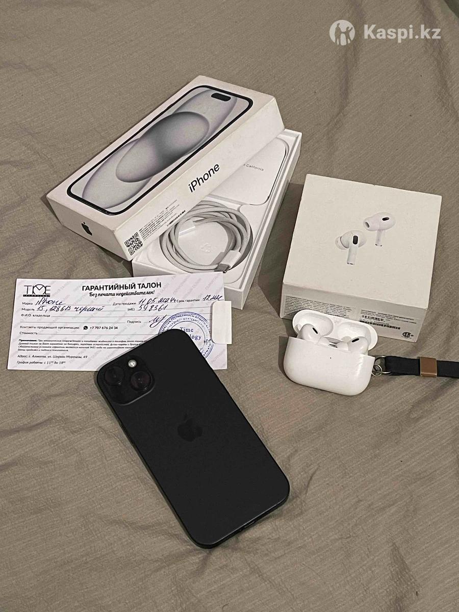 Продаю iPhone 15, 128 ГБ и AirPods Pro 2. iPhone с наушниками можете забрать за 250 000. Если отдельно брать: iPhone- 215.000 Наушники - 45.000 Емкость аккумулятора: 82% Face, True Tone ✅ В ремонте не был ❗️ Полная комплектация (коробка, зарядка) AirPods Pro 2- 50000 Полная комплектация (коробка, зарядка) Покупали за 130.000 в каспи Любая проверка на оригинальность Состояние у телефона и наушников отличное–без минусов Скупщики, прошу не беспокоить