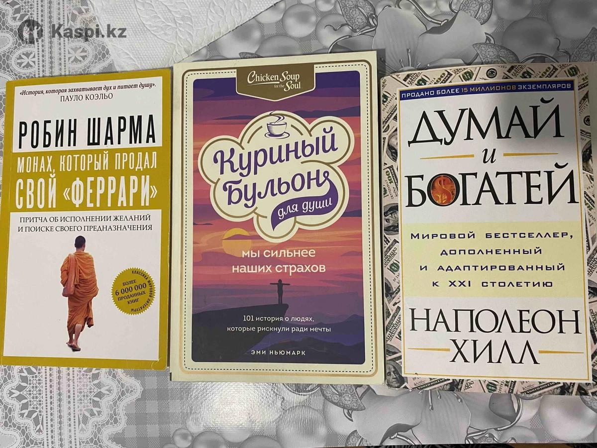 Продаю книги: - Куриный бульон (мотивационная книга) - 1500тг в отличном состоянии - Монах который продал свою Феррари (философия самосовершенствования) - 1500тг в отличном состоянии