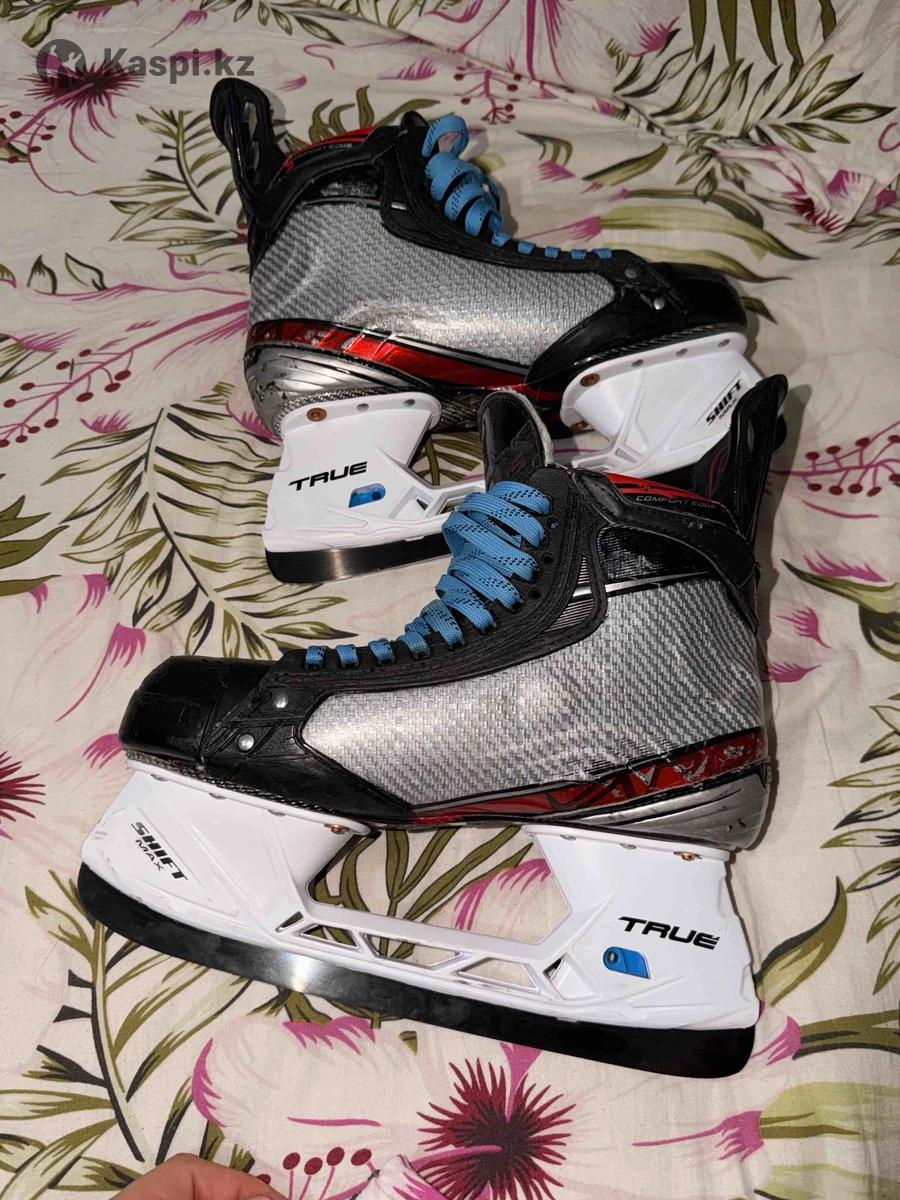 продаю коньки BAUER VAPOR 2X PRO стоимость лезвий 90.000 True Shift Max DLC они новые карбоновые стаканы 50.000 True Shift Max и сами ботинки внутри в хорошем состоянии без дырок а также задники сделаны под заказ и языки тоже стоять от других профессиональных коньков BAUER SUPREME 2S PRO также замена мысков на новые полностью везде новые клепки и стоят по 4 медной клепке на двух ботинках