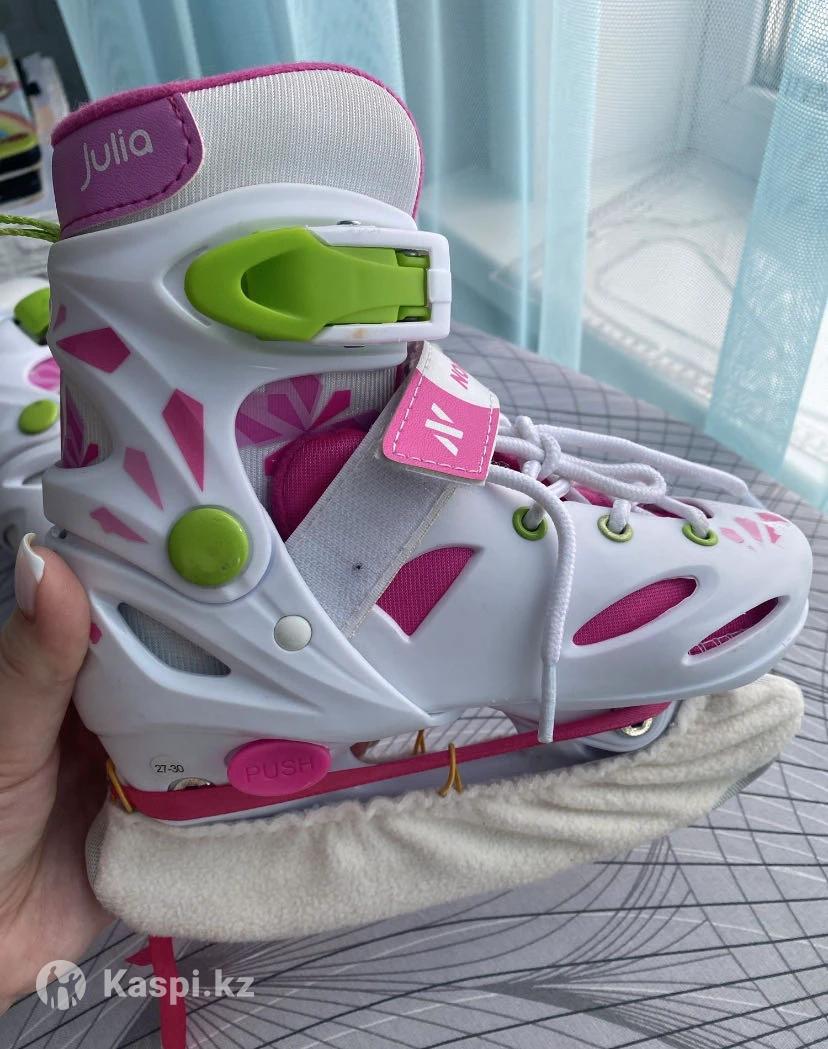 Продаю коньки детские раздвижные для девочки фирмы Nordway (Julia). Размер 27-30. Наточены. Отдельно шила для них чехлы на лезвия, отдам в подарок. Ребенок кататься училась на них, пробовали раз 6 от силы за 2 зимы) по итогу дочь выросла)))) лезвия отличные, не ржавые, достаточно толстые, ребенку комфортно. Нахожусь в Сарани, по договоренности привожу в Караганду.