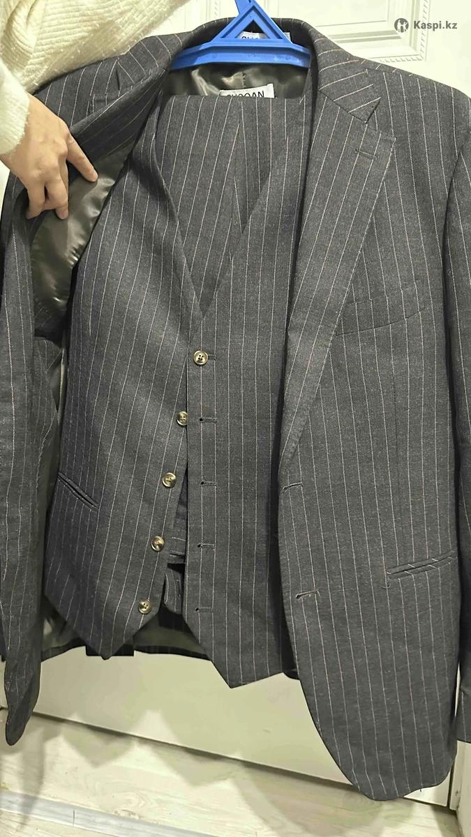 Продаю костюм-тройку SHOQAN (серый костюм в полоску)