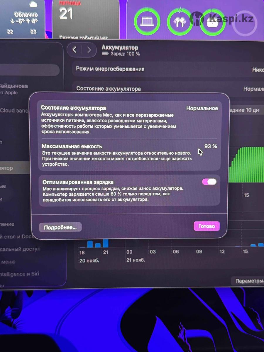 Ноутбук Apple MacBook Air 15 2023 15.3" / 8 Гб / SSD 512 Гб / macOS / MQKT3 Тип для работы и учебы, ультрабуки Операционная системаmacOS Серия (Линейка)Apple MacBook Air Экран Диагональ экрана 15.3 дюйма Разрешение экрана 2880x1800 Частота обновления экрана 60 Гц Яркость экрана 500.0 кд/м2 Покрытие экрана глянцевое Тип матрицы IPS Процессор Максимальная частота процессора 3500.0 МГц Процессор Apple M2 Базовая частота процессора 3500.0 МГц Количество ядер процессора 8 ядер Память Размер оперативной памяти 8.0 Гб Устройства хранения данных Тип жесткого дискаSSD Общий объем накопителей 512.0 Гб Видео адаптера встроенная видеокарта Видеокарта Apple M2 Беспроводная связь и подключение Стандарт Wi-Fi 802.11ax Версия Bluetooth 5.3 Интерфейсы USB Type-C Входы на наушники Звук и устройства ввода Звук микрофон, колонки Устройства позиционирования Touchpad Подсветка клавиатуры Раскладка клавиатуры английская Цвет серебристый КамераFaceTime HD 1080p Особенности корпуса металлический Дополнительная информация Touch ID, Retina дисплей, технология True Tone Модельный год2023 Питание Аккумулятор 66.5 Вт Приблизительное время автономной работы 5.0 ч Вес и габариты Габариты (ДхШхТ)237.6x340.4x11.5 мм Вес 1.51 кг Покупала для работы, пользовалась 2 года. Продаю из-за того что ушла с работы и больше нет надобности. Состояние аккумулятора 93% В целом в хорошем состоянии, надо только поменять термопрокладку. Его отдам в подарок, так же могу отдать подставку для ноутбука. Торг уместен