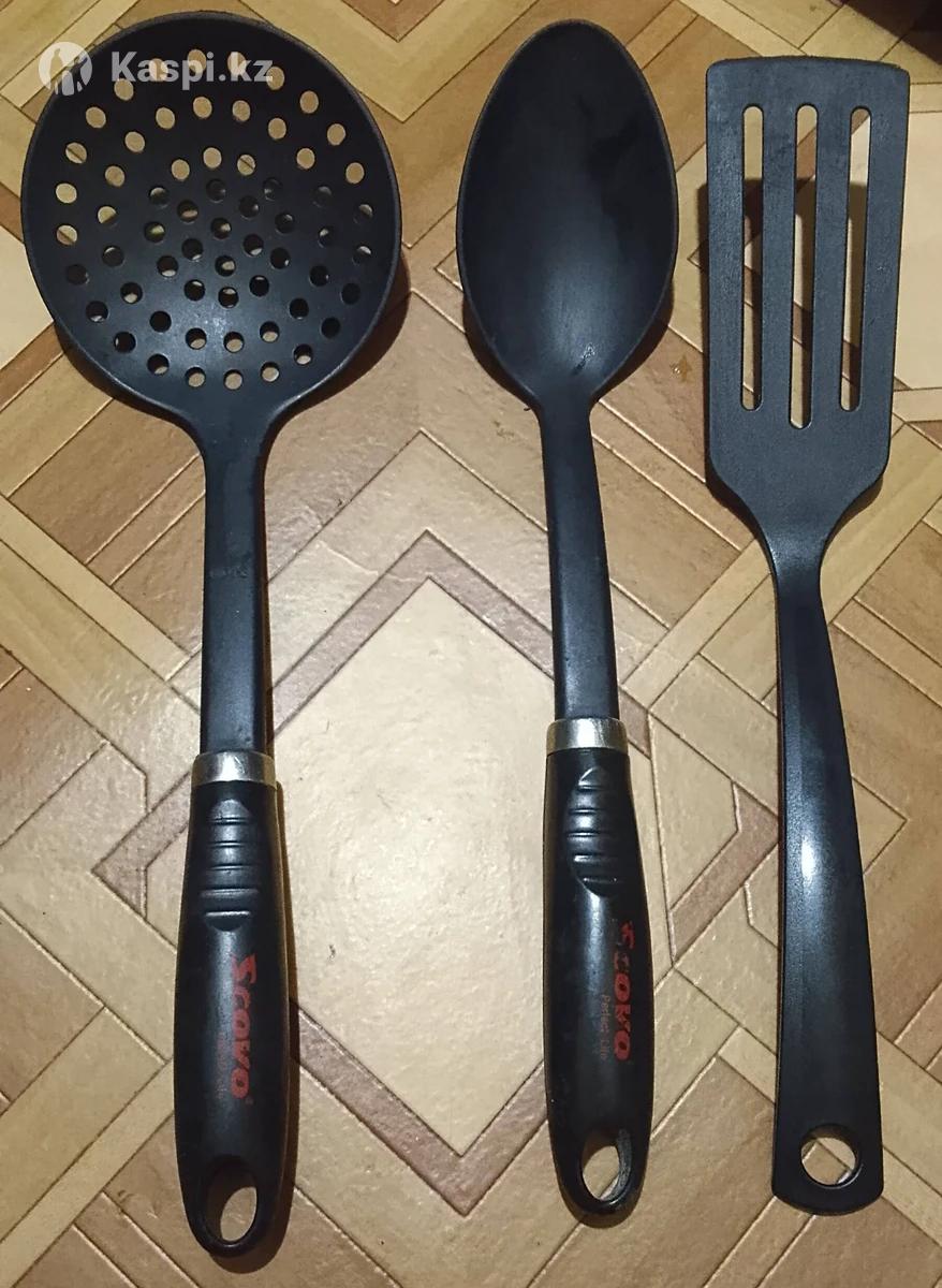 Продаю набор кухонных принадлежностей по 500 тг: 1 Шумовка SCOVO 2 Ложка поварская SCOVO 3 Лопатка
