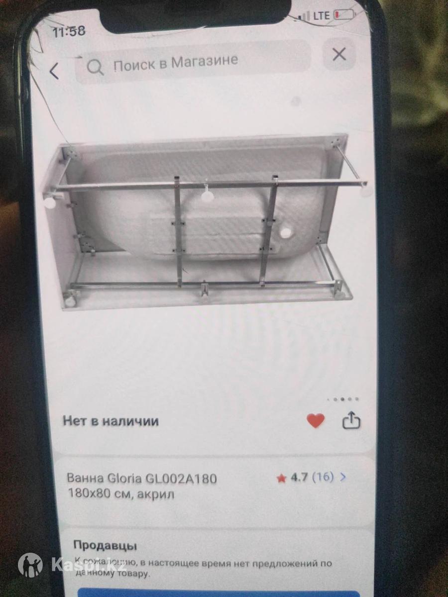 Продаю ванну Глория 180х80, не подошел размер, ножки ,каркас Г образный, акриловая ванна производство Россия , повреждение нет