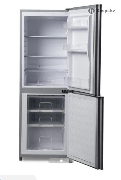 Новый холодильник 2-х камерный стального цвета, морозильная камера снизу