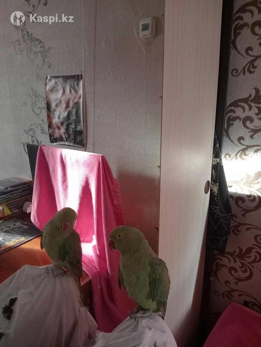 Продаю ожерелового попугая (самец), возраст 8 месяцев,цена 50 тыс ,клетка в подарок , забрать можно на востоке 2, майкудук