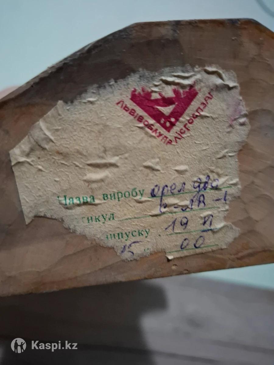 Коллекционная статуэтка “Орел” резная ручная работа, СССР (1970–1980-е гг.) Редкая деревянная фигурка, выполненная вручную. Производство времен СССР, сохранилась оригинальная фабричная наклейка. Отличное состояние — без трещин и сколов. Подойдет для: • коллекционеров старинных предметов и декора 🪶 • интерьера в ретро-или этно-стиле 🏠 • символического подарка — орел приносит силу и уверенность 💫 📏 Высота около 30 см 💸 Цена: 12 000 тг (возможен торг) 📍 Караганда ✨ Редкая находка 70-х–80-х годов — живая история и ручной труд в одной вещи.