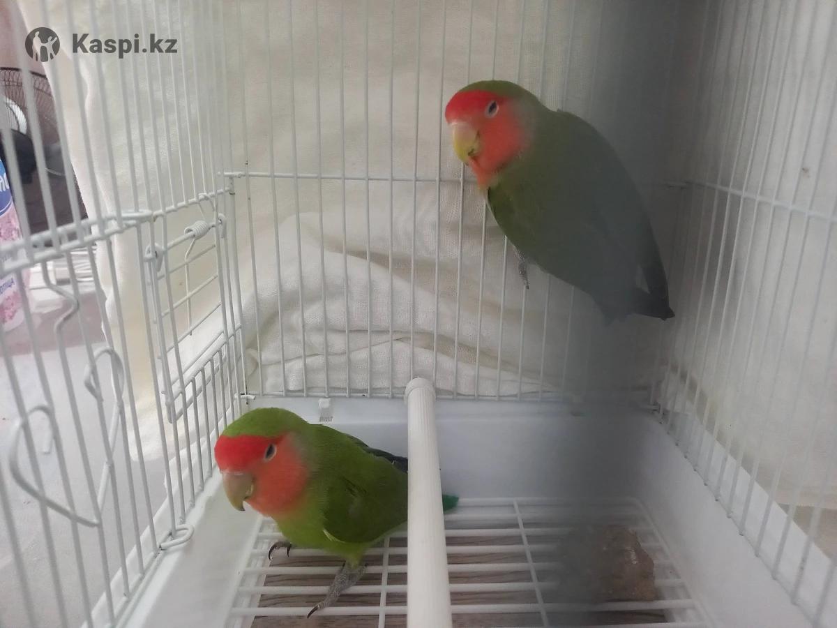 г.КЫЗЫЛОРДА. Продам 3 попугая Неразлучники (2 зеленых, 1 желтый - щеки и горло красно-оранжевые) + клетка. Общая стоимость вместе с клеткой (отдельное фото клетки с поилкой и др. есть) 60000тенге (60тыс.тг.). Пол неизвестен. Можно по отдельности по 20000тг(20тыс.тг) за 1 попугай без клетки. Более детально пишите на Сатылады 3 попугай Неразлучники (2 жасыл, 1 сары) + тор. Тормен бірге жалпы құны (тордың жеке фотосуреті тұр) 60000 теңге (60 мың теңге.). Жынысы белгісіз. Бөлік алуға болады: Торсыз 1 попугай - 20000тг(20 мың тг) Басқа сұрақтар бойынша -қа жазыңыз