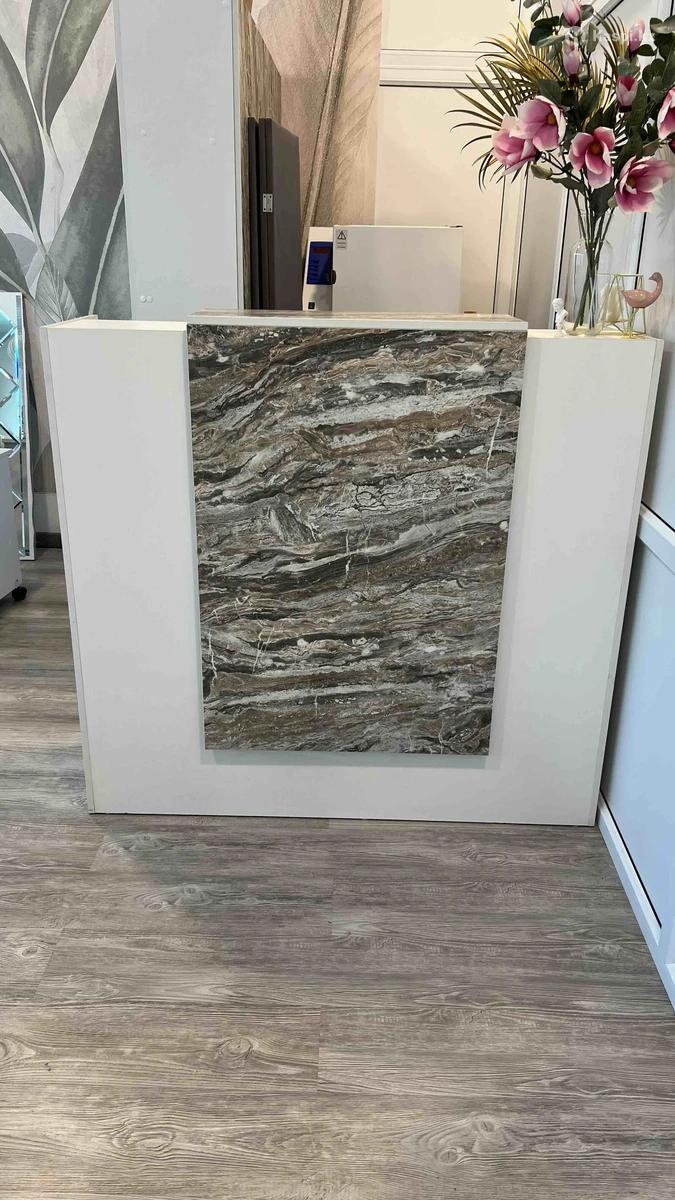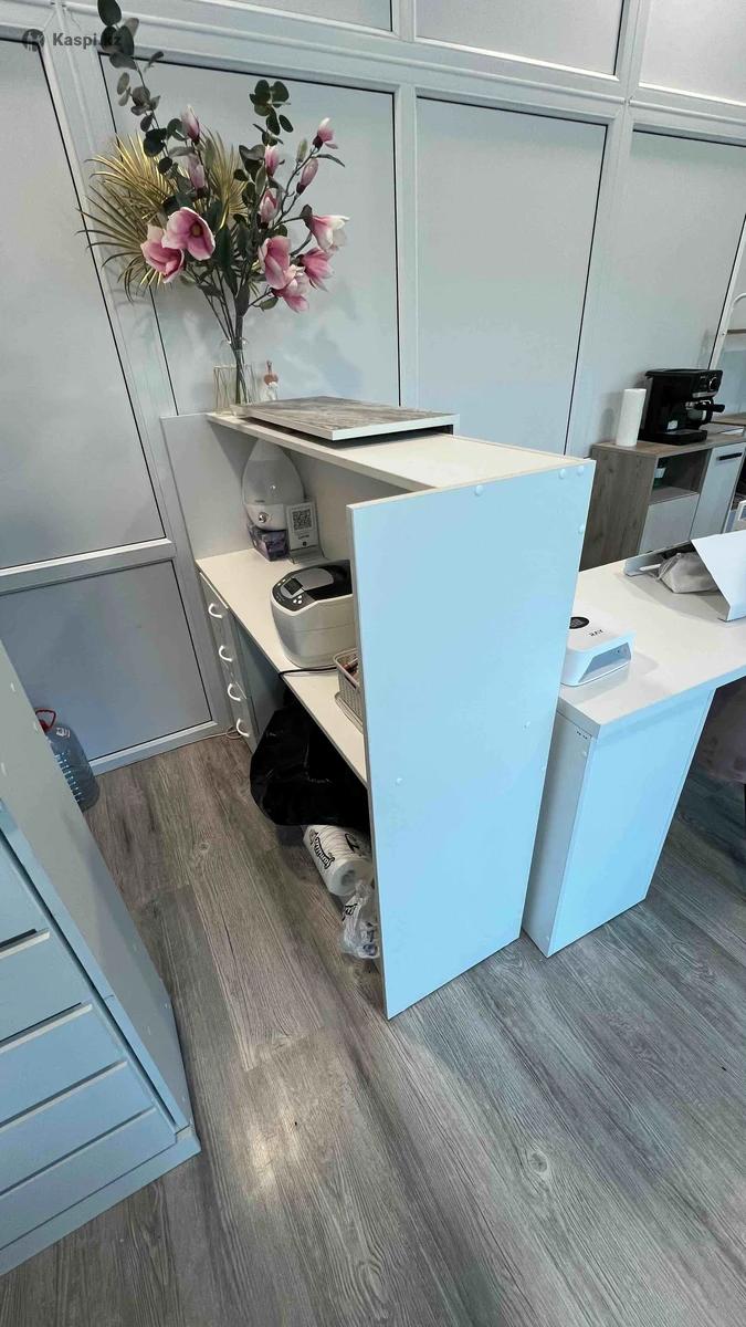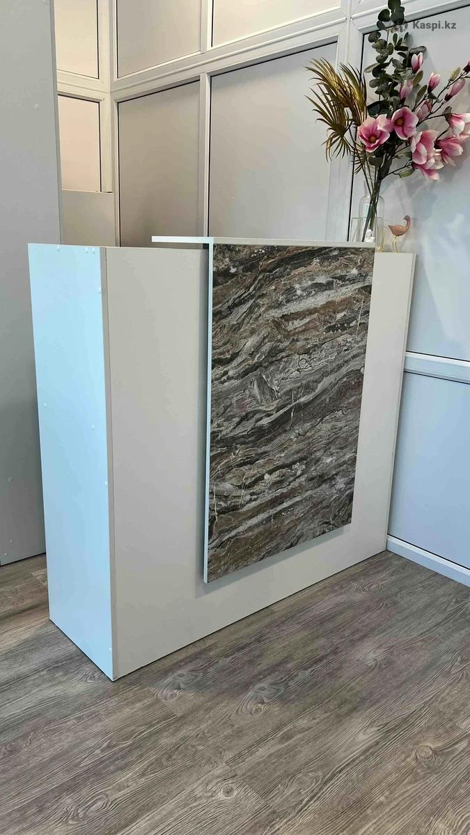 Продаю б/у ресепшн. Ширина 130 см, высота 125 см, глубина 40 см. Есть тумба с ящиками. На столешнице внутри есть небольшой дефект. Снаружи состояние идеальное, можно сделать дополнительно подсветку.переднюю панель можно поставить по центру, либо сдвинуть ассиметрично. Рацион цума, бц Казахстан.