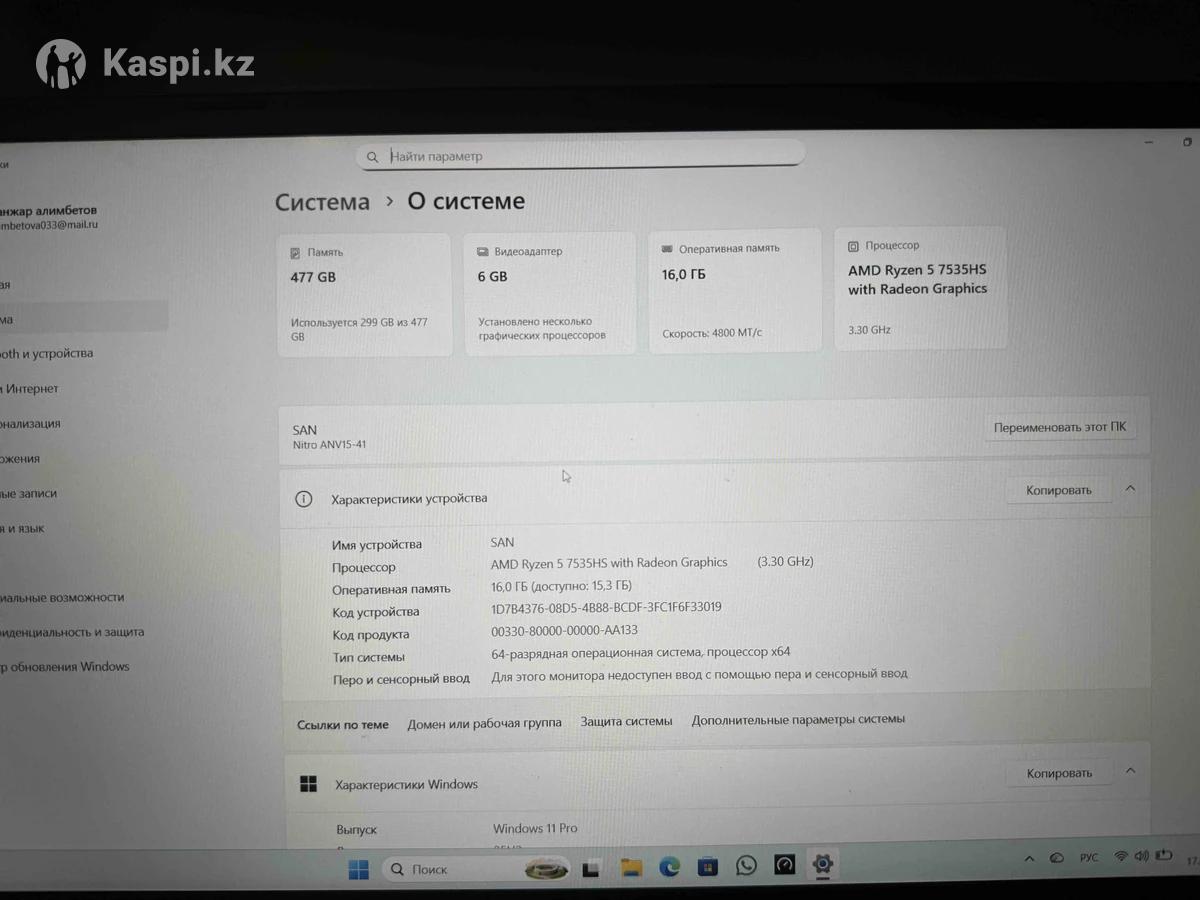 Очень хороший ноутбук состояние соска Игровой и можно для офиса Видеокарта rxt 3050 6g And ryzen 5 7000 series 16g ozu ggr5