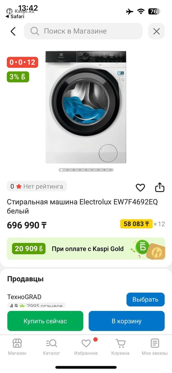 Стиральная машина Electrolux PerfectCare 700 (Wash&Dry 8/4 кг) Продам стиральную машину в отличном состоянии. Модель Electrolux PerfectCare 700, стирает до 8 кг и сушит до 4 кг — удобно, ничего не нужно развешивать. 🧺 Основные преимущества: •Функция стирка + сушка в одном цикле •Технология DualCare — бережно стирает и сушит •Большой люк, удобная загрузка •Множество программ: хлопок, синтетика, деликатная, быстрая стирка, детская, шерсть, смешанные ткани •Отложенный старт, регулировка оборотов и температуры •Тихая работа 📌 Состояние: •Полностью рабочая •Использовалась аккуратно •Без запахов и ржавчины •Внешний вид хороший Отличный вариант для семьи — стирает чисто, сушит быстро. Можно сразу забирать, стоит подключённая — можете проверить.