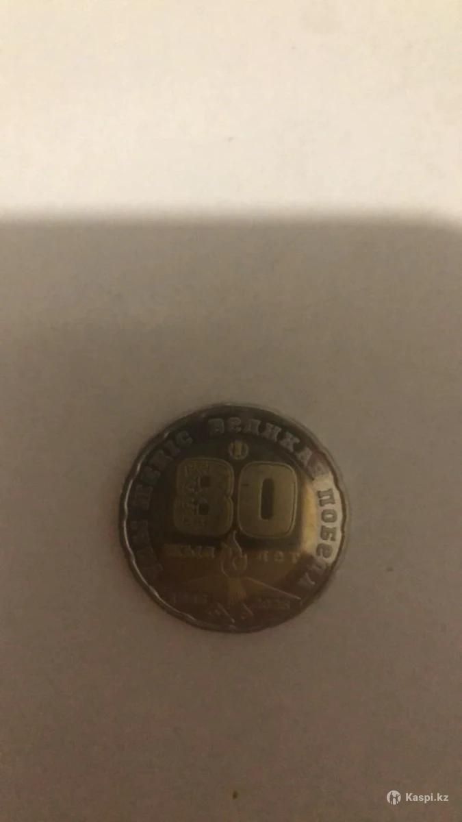 Это памятная биметаллическая монета номиналом 200 тенге, выпущенная Национальным банком Казахстана к 80-летию Победы в Великой Отечественной войне.